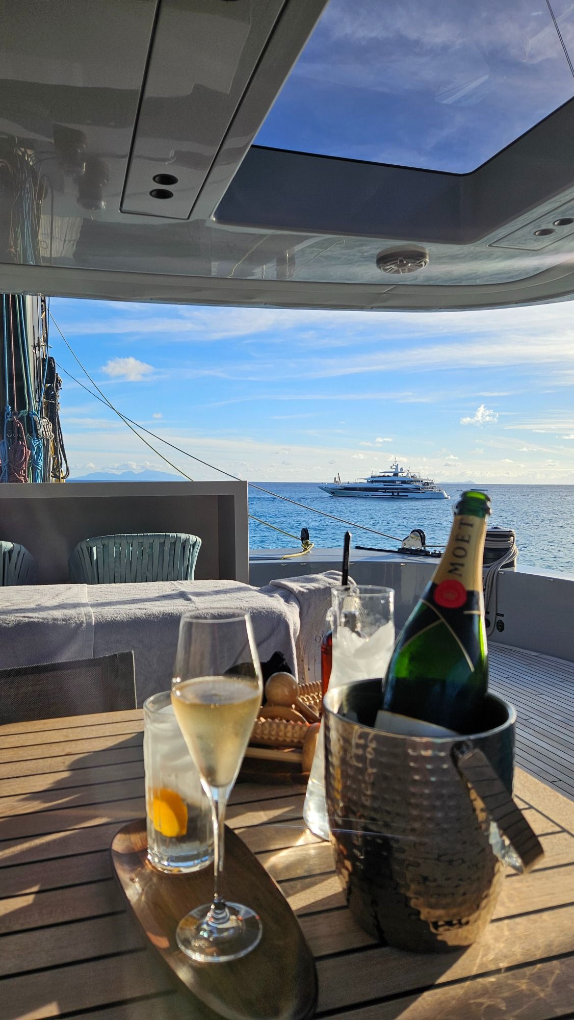 Willkommen an Bord der sensationellen Sunreef 80 „SHADES OF GREY“, einem Inbegriff von Luxus und Eleganz, der Sie einlädt, die bezaubernden Gewässer des westlichen Mittelmeers zu erkunden. Dieser außergewöhnliche Sunreef-Katamaran bietet unvergleichlichen Komfort und Stil und sorgt für ein unvergessliches Chartererlebnis. An Bord der Sunreef 80 sorgt ein engagiertes und professionelles Team dafür, dass Ihr Erlebnis unvergesslich wird. Unsere freundlichen Stewardessen kümmern sich mit Hingabe um Ihr Wohl und stehen Ihnen jederzeit zur Seite, um sicherzustellen, dass es Ihnen an nichts fehlt. Lassen Sie sich von unserem talentierten Koch mit exquisiten Menüs verzaubern, die auf Ihre Wünsche abgestimmt sind – vom entspannten Frühstück bis hin zum festlichen Abendessen.