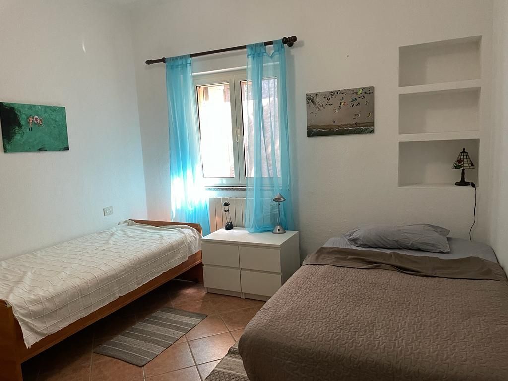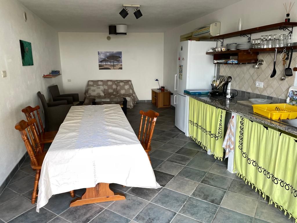 Das Ferienhaus (Nebengebäude) verfügt über ein Schlafzimmer mit einem Doppelbett und einem Klappbett im Wohn-Essbereich. Die Unterkunft lässt sich somit mit bis zu vier Gästen bewohnen. Das Badezimmer verfügt über eine Dusche. Die Küche ist gut ausgestattet und verfügt über sämtliche Utensilien für den täglichen Bedarf. Im Innenbereich sowie auf der angrenzenden Terrasse vom Haupthaus befinden sich Ess- und Sitzmöglichkeiten, die Sie gerne mitbenutzen können. Am Nebengebäude führt eine Treppe zur Dachterrasse. Sie wurde mit einer gemütlichen Lounge aus Paletten ausgestattet. Hier können Sie bei einem Aperitivo den besonderen Meerblick genießen und verweilen - Urlaubsfeeling pur!